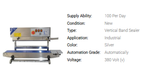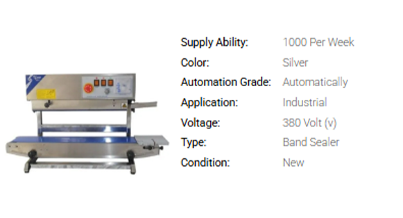 A Band Sealeris a plastic Discover the exceptional quality of our Band Sealer, a must-have for any packaging operation. Our Vertical Band Sealer and Horizontal Band Sealer are new releases that are in high demand due to their outstanding performance. With over 25 years of experience in the industry, we pride ourselves on providing peerless sealing solutions for our customers. Our Band Sealers offer excellent sealing capabilities, ensuring your products are securely packaged every time. The five advantages and features of our Band Sealer include reliable sealing, adjustable speed settings, durable construction, easy operation, and consistent results. With a supply ability across All India, our Band Sealers are the perfect choice for any packaging application.