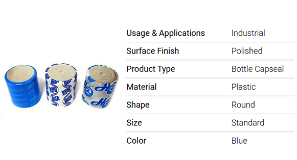 The Bottle Capseal is made of high-quality plastic material with a standard round shape and a polished surface finish. It is designed for industrial use and applications.